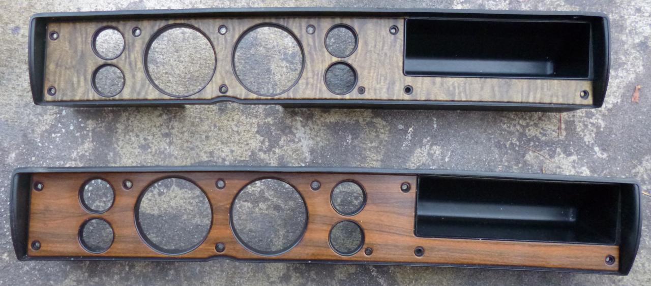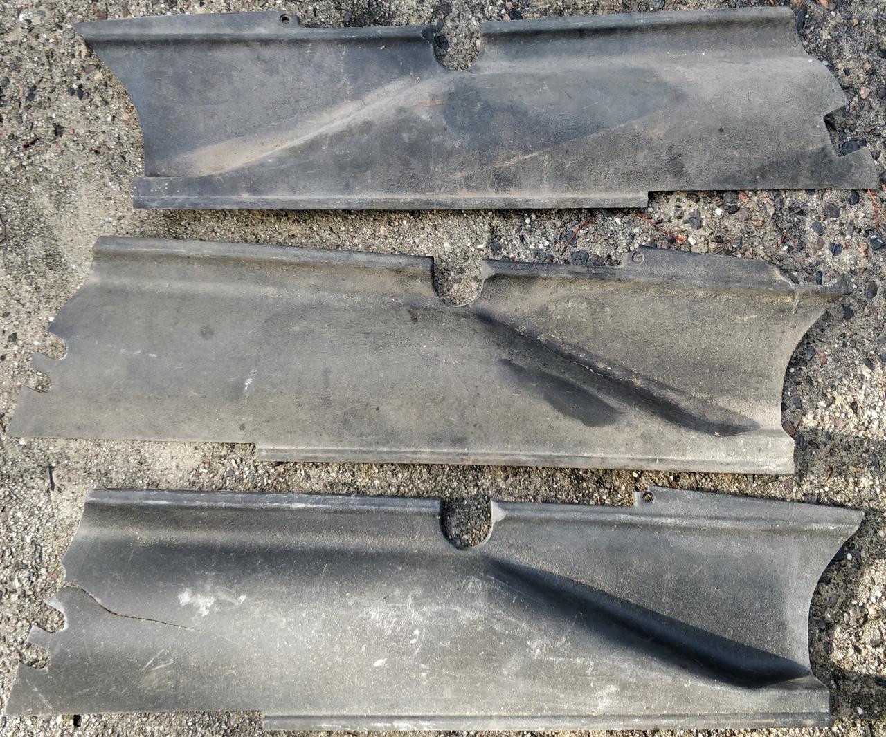 71-73 Hatchback rear black panels. Top one is in good shape, the other two have issues. The middle one has a molten spot seen in the top right, the bottom one has a crack and a small piece missing in the left middle. I am thinking that the bottom one would work OK as the cracked part will be mostly covered by the front panel and seat.
